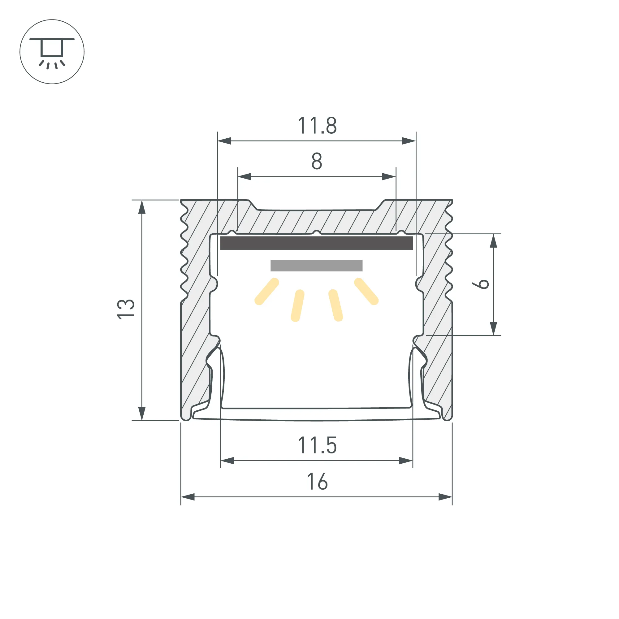 Алюминиевый анодированный профиль для светодиодных лент и линеек. Габаритные размеры (L×W×H): 2000x16x13 мм. Ширина площадки для ленты 11,8 мм. Экраны, заглушки и другие аксессуары приобретаются отдельно. Цена за 1 метр.