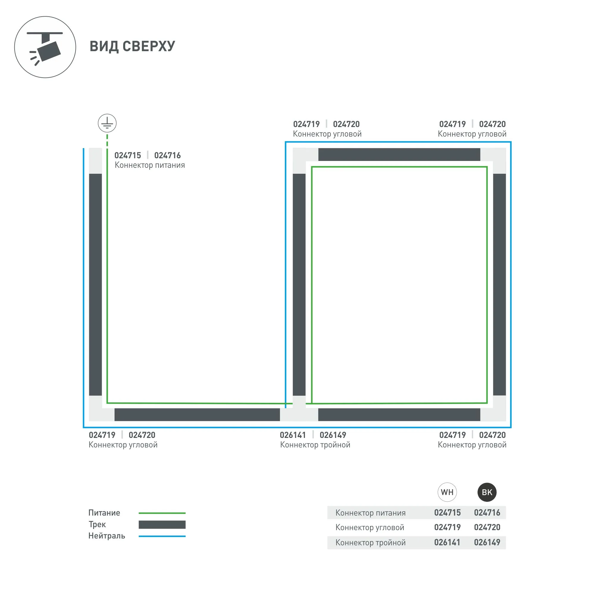 Угловой коннектор 90 градусов, питание по внутренней стороне. Цвет черный. 99х99х33 мм с контактами, 66х66х33 мм без контактов. При использовании с треками и аксессуарами другой серии возможно отличие по цвету.
