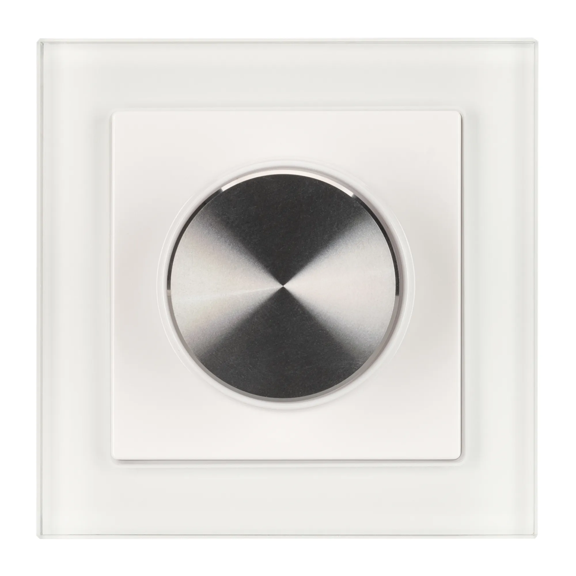Встраиваемая роторная белая стеклянная панель для работы по протоколу DALI. Объекты управления: BROADCAST или группа 0-14 (15-я группа не управляется). Установка номера группы выполняется переключателями на корпусе. Подсветка регулятора во включенном состоянии. Питание от шины DALI (4 мА). Стандартная рамка входит в комплект поставки.
