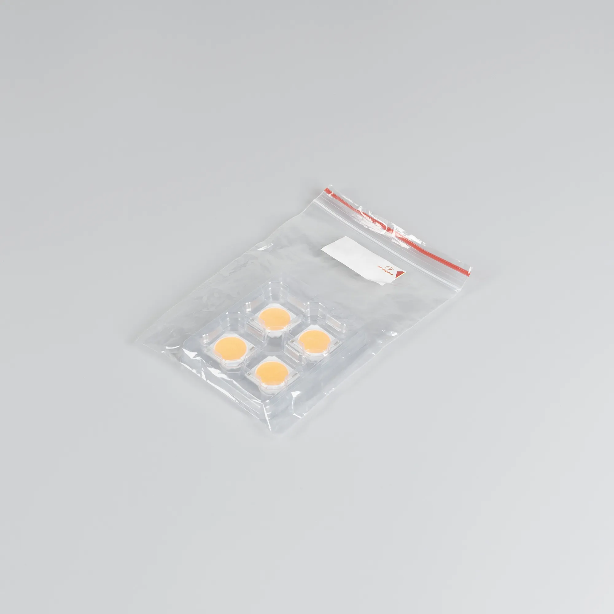Мощный светодиод типа COB, размер 19×19 мм. Чип SANAN 20x35mil. Цвет свечения специальный теплый (2900 К) для освещения продуктов. Угол излучения 120°. Световой поток 4300 лм при If=1050 мА, VF=38 В. P=40 Вт.