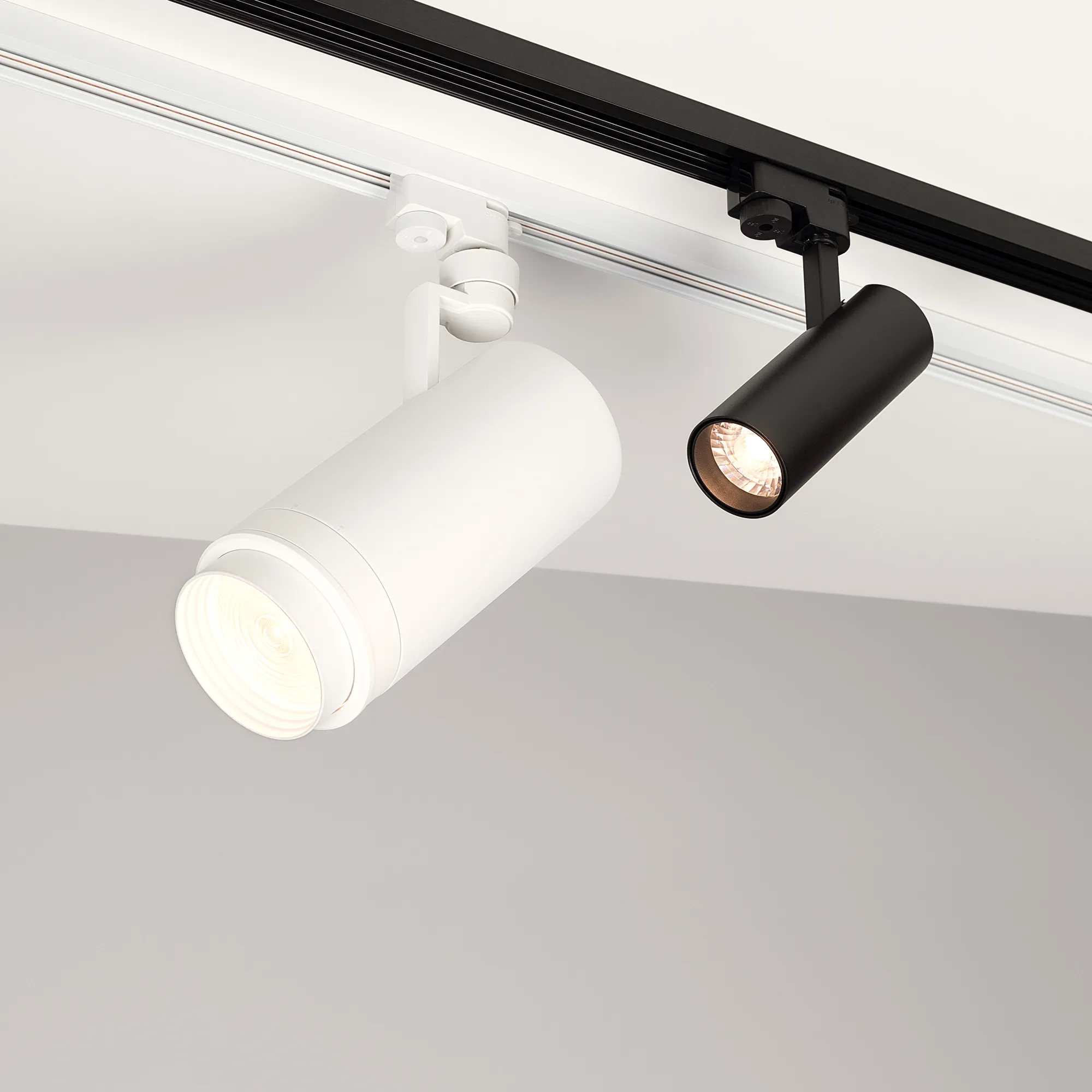 Светильник для треков/шин 2 провода, 10Вт. Цвет свечения ТЕПЛЫЙ 3000K, световой поток 800-1000лм, регулируемый угол 20-60°, CRI>90. Корпус круглый, металл, цвет белый, IP20. Размеры DxHxL Ø67x180x155мм. Входное напряжение AC220-240V, мощность 10Вт. Драйвер встроенный (27-38V, 260mA).
