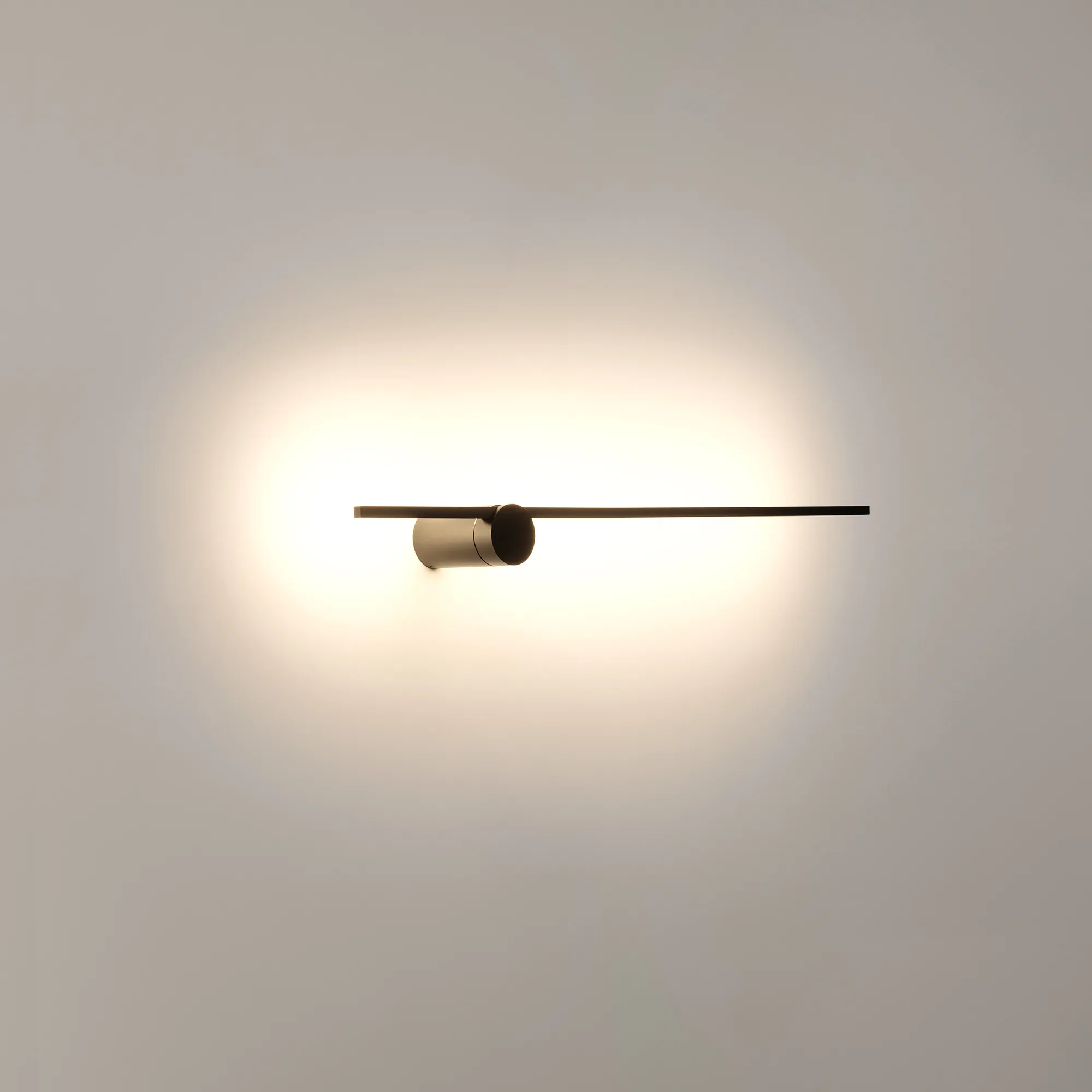 Декоративный настенный поворотный светильник. Мощность 7 Вт, св. поток 260 лм, 37 лм/Вт, теплый 3000 K, CRI>80, угол 110°, напряжение питания 230 В. Черный фигурный корпус из алюминия, экран из поликарбоната, степень защиты IP20. Размер: длина 600 мм, ширина 55 мм, высота 102 мм. Монтаж накладной. Драйвер 5-12 В, 700 мА, пульсация <0,5%. Возможность поворота светоизлучателя на 355 градусов.