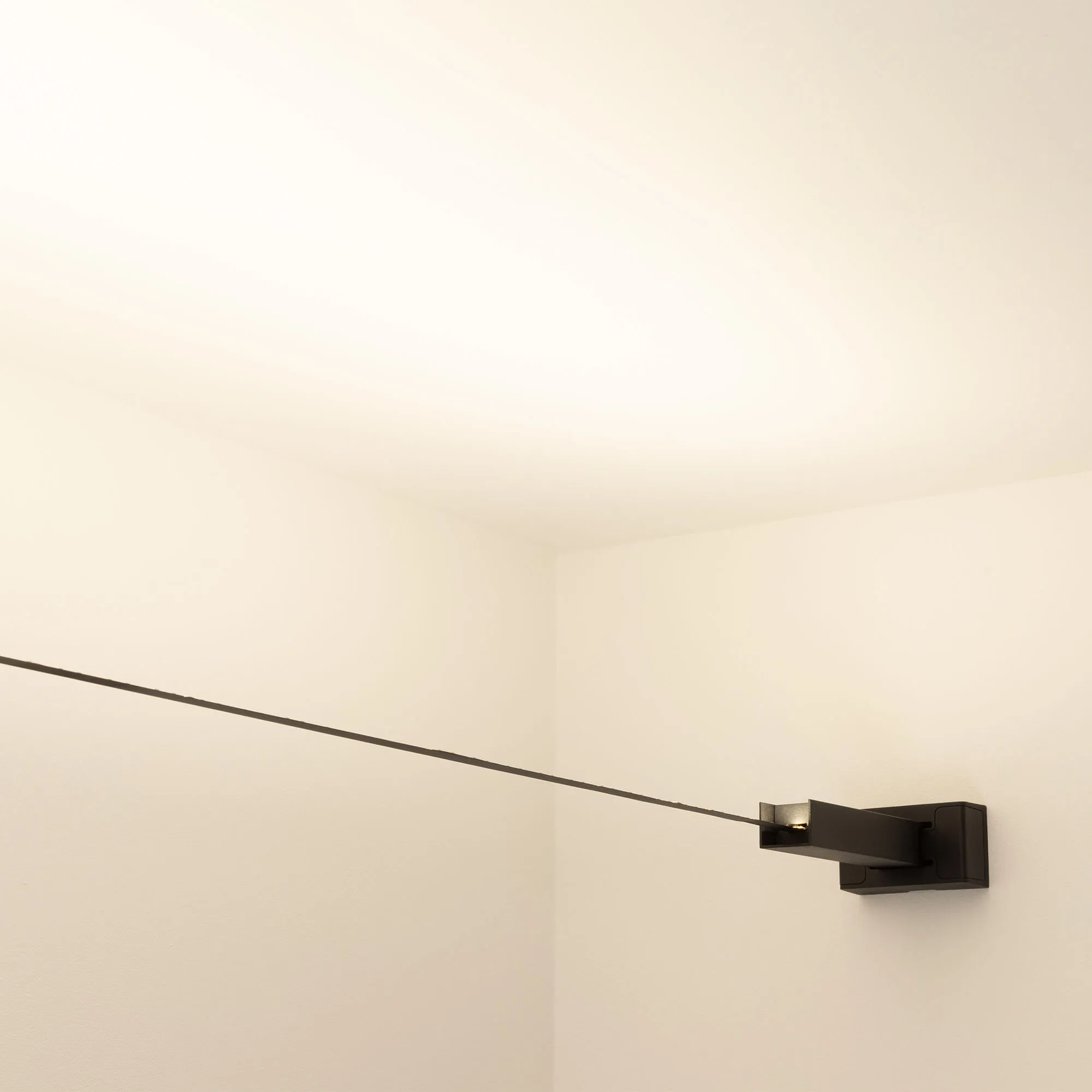 Лента-трос STINGRAY. В комплект входят: открытая светодиодная стабилизированная лента IC-A120, стальное полотно для ленты 10 м, ширина 15 мм, 2 настенных крепления, аксессуары для фиксации и монтажа. Цвет - черный.