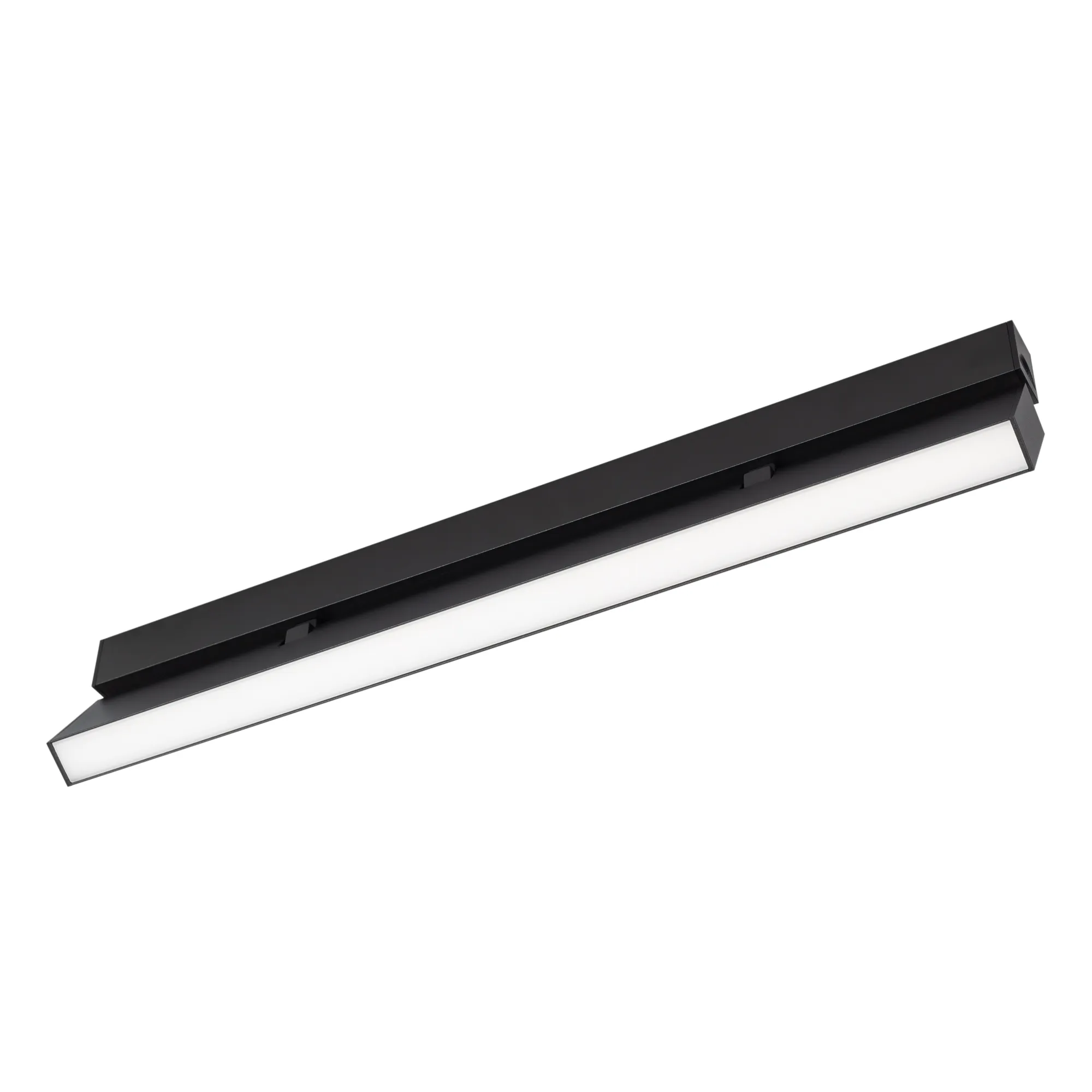 Светильник поворотный для магнитных треков шириной 25мм, 12Вт. Цвет свечения ТЕПЛЫЙ 3000K, световой поток 720лм, угол 100°, CRI>90. Корпус прямоугольный, металл, цвет черный, IP20. Размеры LxWxH 404x20x46мм. Входное напряжение DC24V, мощность 12Вт. Драйвер DС24V/AC230V поставляется отдельно. Диммируется только с 026407, 027633.