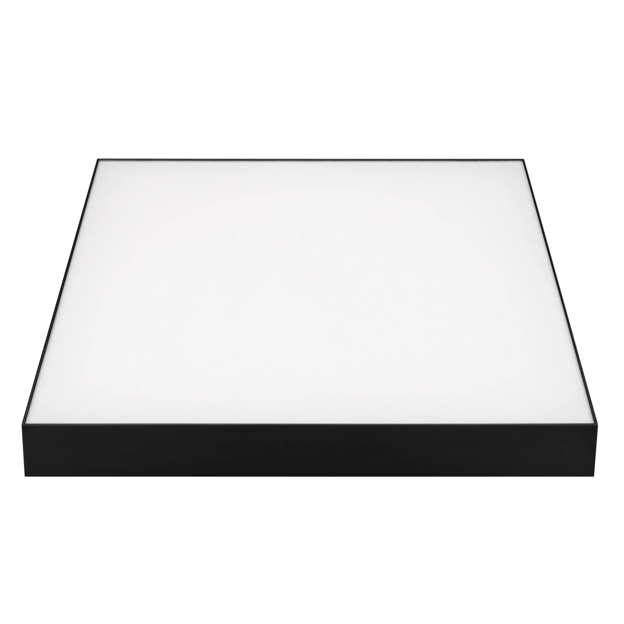 Поставка под заказ от 50 шт. Накладной светильник. Мощность 50 Вт, св. поток 4100-4400 лм, 80-90 лм/Вт, теплый 3000 K, CRI>90, угол 120°, напряжение питания 230 В. Черный квадратный корпус из алюминия, экран PC, степень защиты IP40. Размер: длина 500 мм, ширина 500 мм, высота 64 мм. Монтаж накладной. Драйвер 27-42 В, 1200 мА, пульсация <5%.
