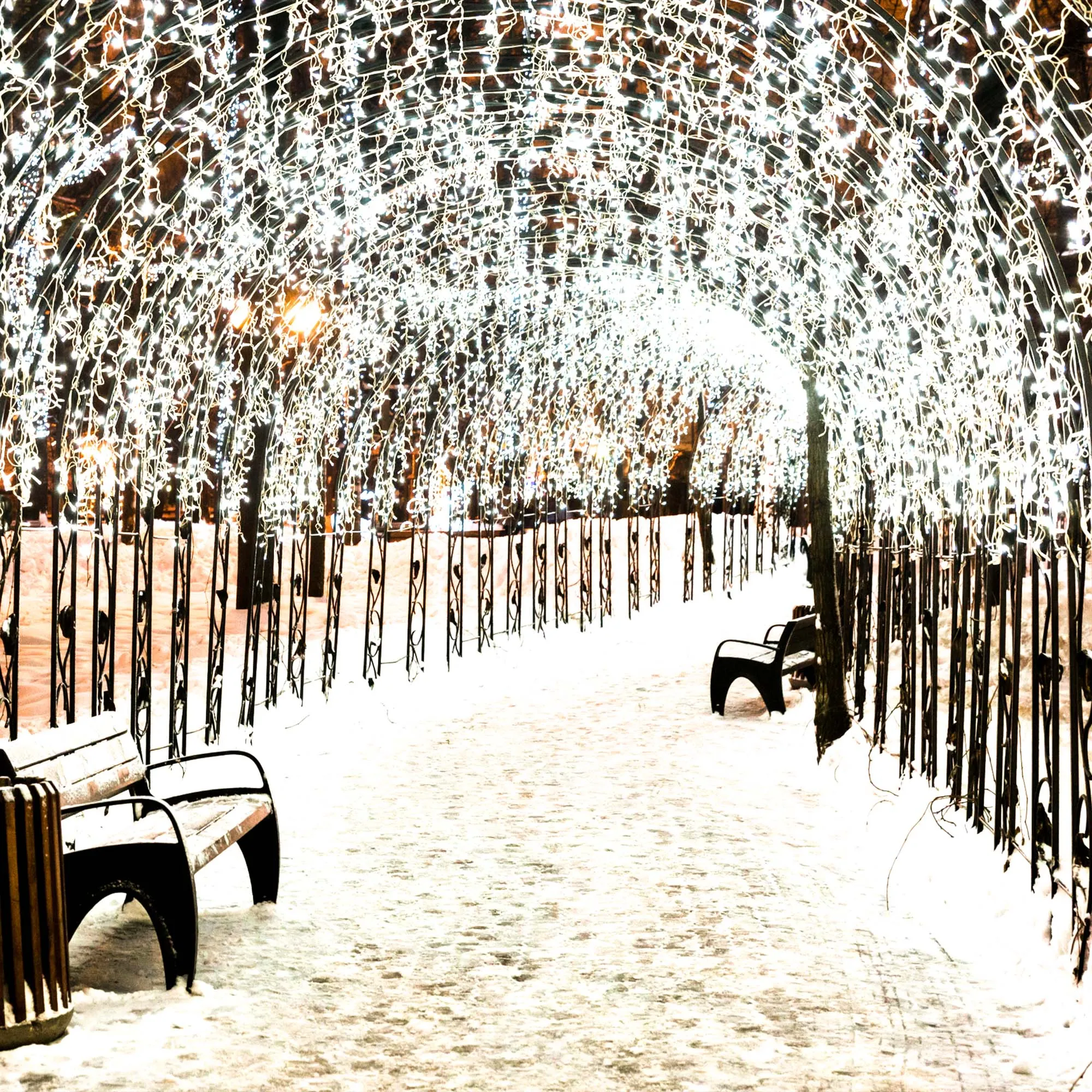Светодиодная бахрома Classic. Размер 2400 мм (длина 2400 мм, по длине 24 нити высотой 200/600 мм). Количество светодиодов 88 шт размером 7 мм. Цвет свечения ТЕПЛЫЙ БЕЛЫЙ (3000 К). Эффект медленного мерцания каждого светодиода с резким световым рисунком (прозрачная вогнутая линза). Провод черный, ПВХ. Питание 230 В, Мощность 6 Вт, защита IP65, применение на улице под навесом. Аксессуары для подключения приобретаются отдельно.