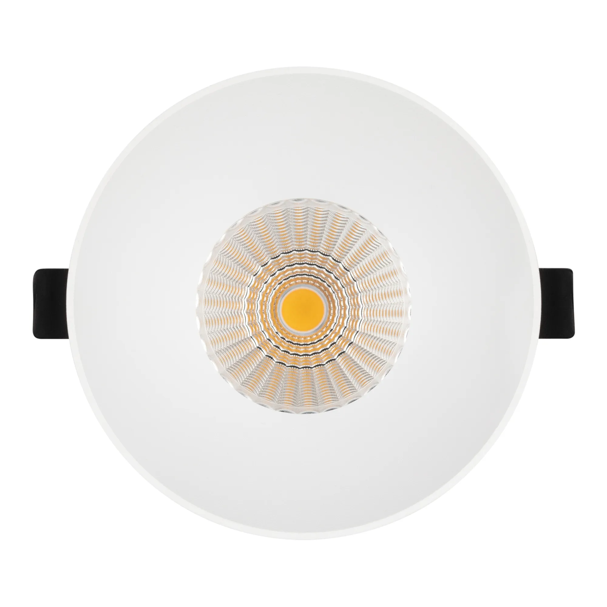 Встраиваемый светильник даунлайт. Мощность 15 Вт, св. поток 1300 лм, 87 лм/Вт, теплый 3000 K, CRI>90, UGR<16, угол 38°, напряжение питания 230 В. Белый круглый корпус из алюминия, степень защиты IP20. Размер: диаметр 95 мм, высота 90 мм. Монтаж встраиваемый, установочное отверстие: диаметр 86 мм. Драйвер 26-43 В, 350 мА, пульсация <2%.