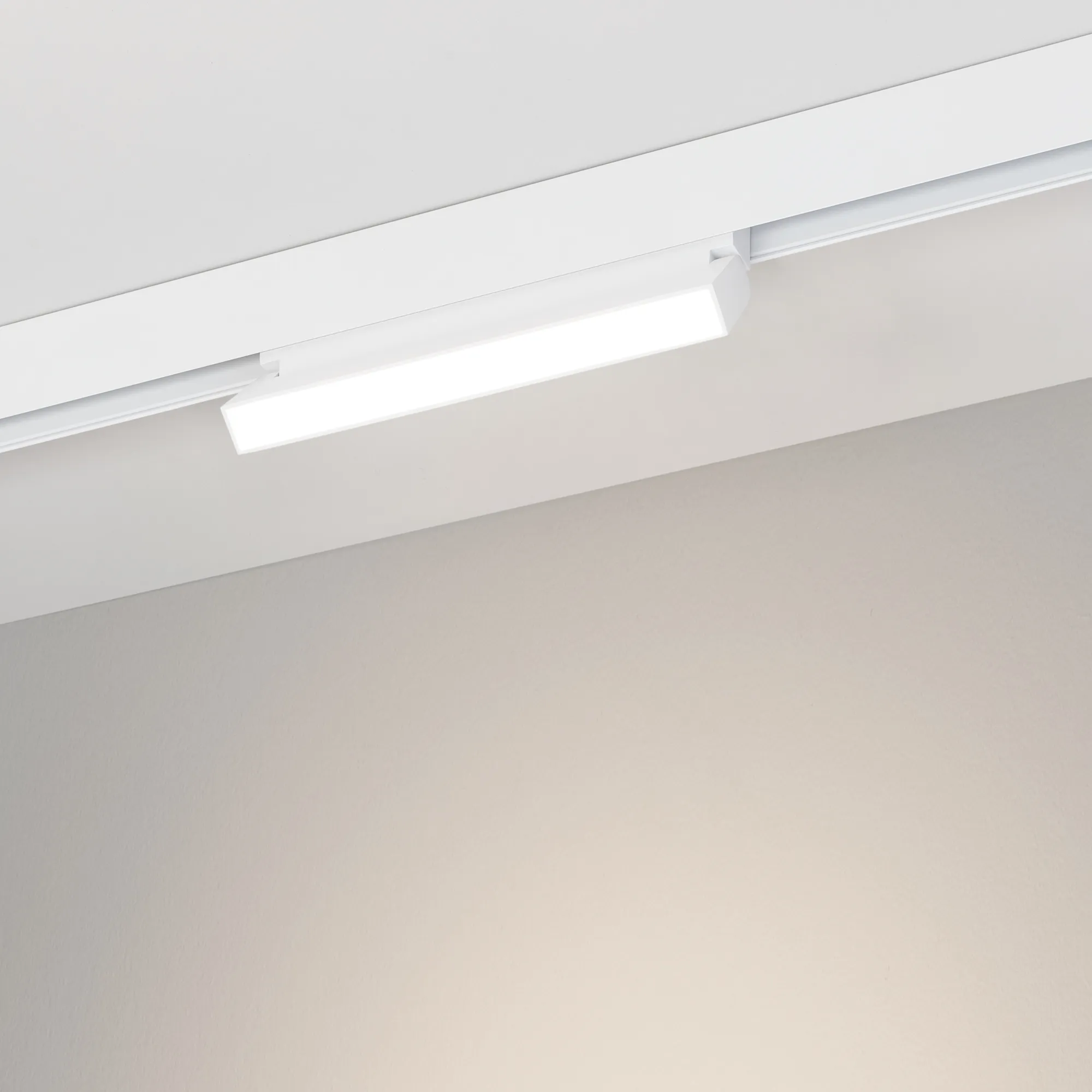 Светильник для магнитных треков MAG-ORIENT шириной 26 мм. Мощность 12 Вт, св. поток 760 лм, 64 лм/Вт, дневной 4000 K, CRI>90, угол 80°, напряжение питания 48 В. Белый прямоугольный корпус из металл, экран поликарбонат, степень защиты IP20. Размер: длина 231 мм, ширина 23 мм, высота 107 мм. Монтаж на трек MAG-ORIENT. Пульсация <1%.