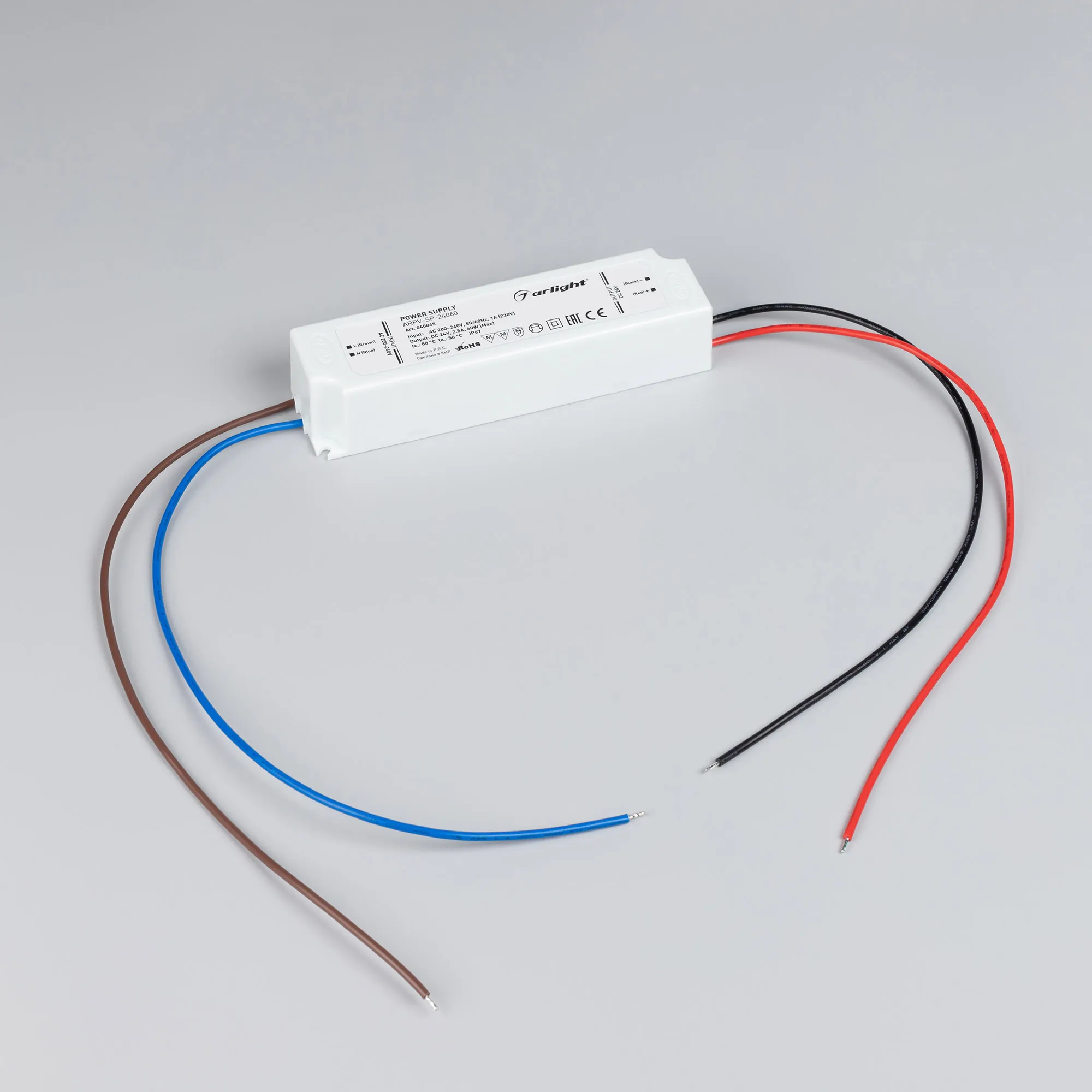 В магазине Arled Market Вы можете купить "Блок питания ARPV-SP-24060 (24V, 2.5A, 60W) (Arlight, IP67 Пластик, 5 лет)"
