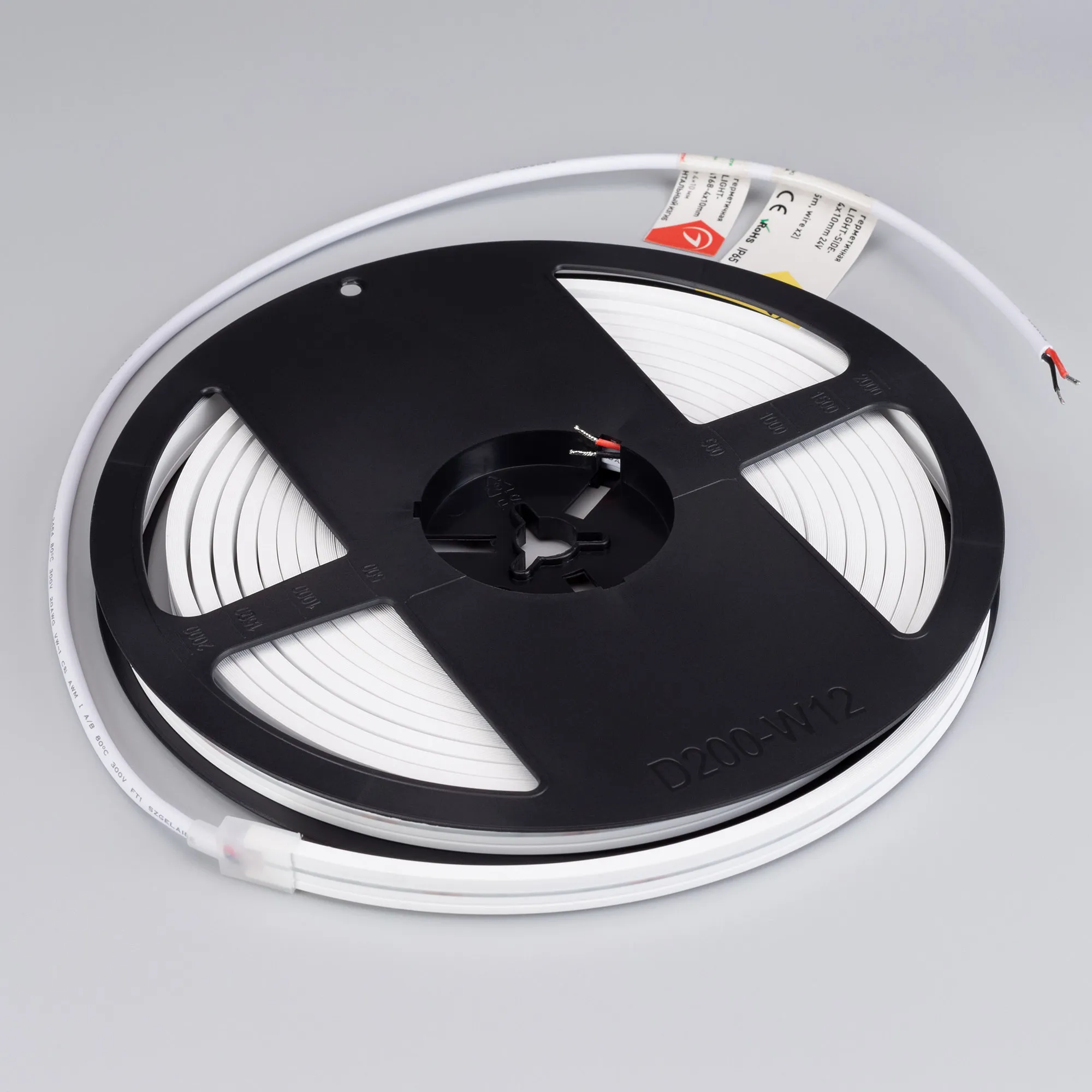 Гибкая герметичная лента (неон серии MOONLIGHT), сечение 4×10 мм. Светодиоды SMD 2835 168 шт/м. Цвет свечения ТЁПЛЫЙ БЕЛЫЙ (2300 К), индекс цветопередачи CRI>90, световой поток 240 лм/м, угол излучения 110°. Мощность 7.2 Вт/м, питание 24 В. Класс пылевлагозащиты IP65. Размеры 5000×10×4 мм. Мин. отрезок 41.66 мм. Горизонтальный изгиб SIDE, минимальный радиус изгиба 30 мм. Вывод кабеля с двух сторон. Катушка 5 м. Цена за 1 м. Гарантия 3 года.