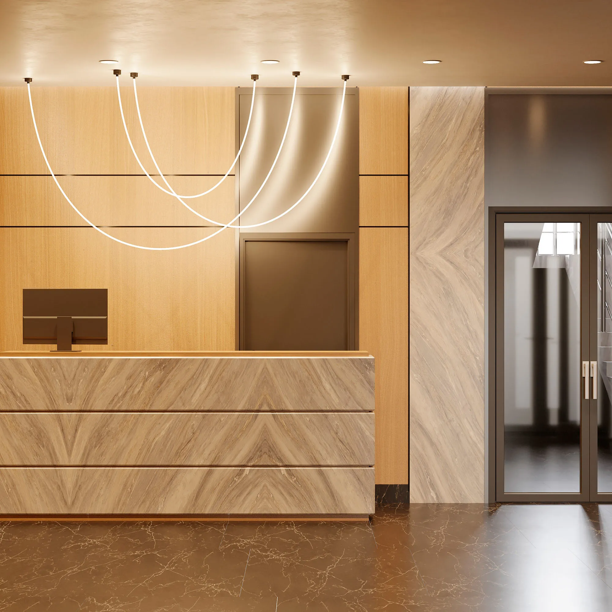 Подвесной светильник. Мощность 36 Вт, св. поток 2300 лм, 63 лм/Вт, дневной 4000 K, CRI>90, угол 360°, напряжение питания 230 В. Золотой круглый корпус из стали, силиконовая герметичная лента, степень защиты IP20. Размер: общая высота чаши 85 мм, высота чаши без вывода под неон 50 мм, диаметр вывода под неон 35 мм, диаметр чаши 130 мм, диаметр силиконовой герметичной ленты 18 мм, длина силиконовой герметичной ленты 2500 мм. Монтаж накладной. Блок питания 24 В, 1880 А, пульсация <5%.