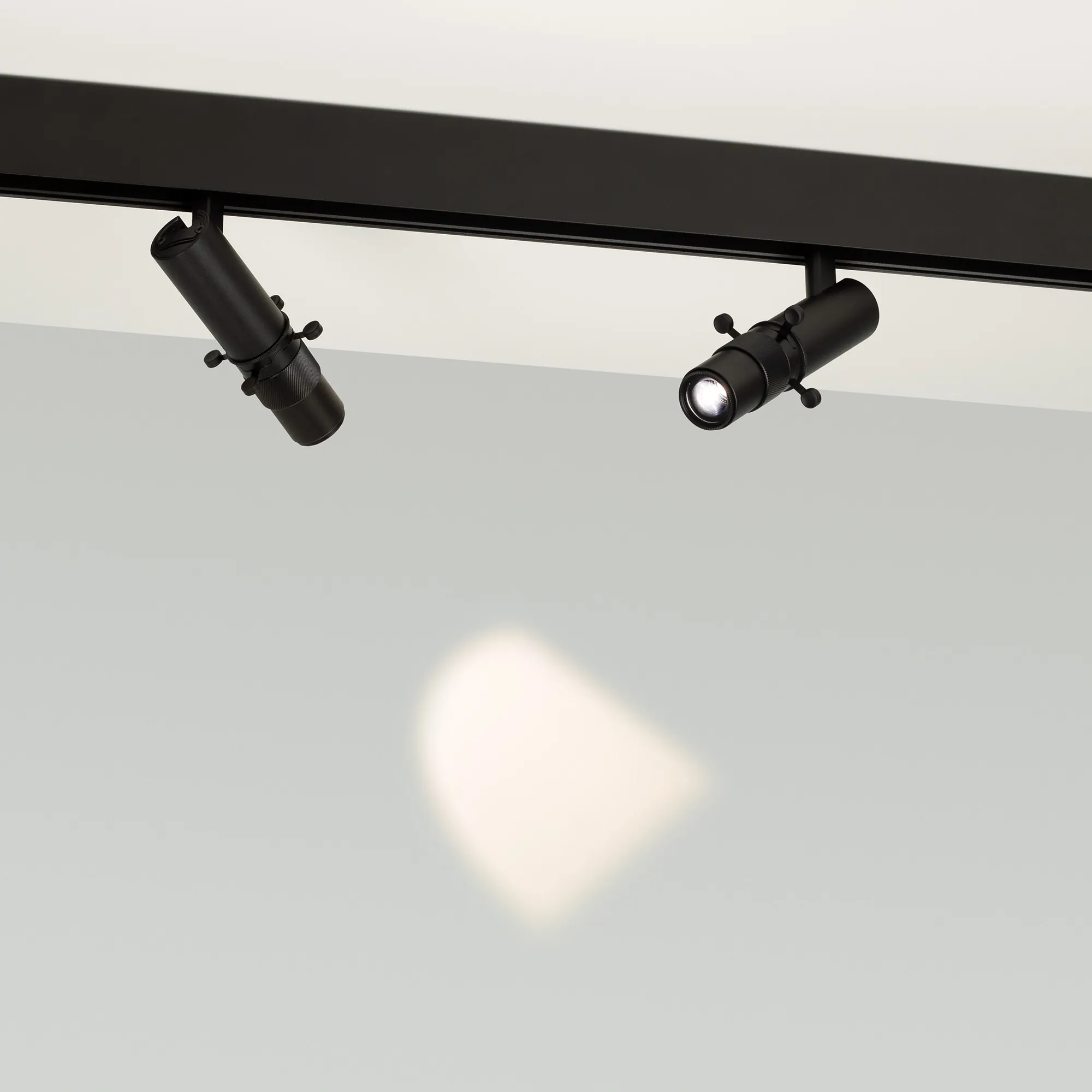 Светильник с кадрируемой оптикой и изменяемым углом для магнитных треков MAG-ORIENT шириной 26 мм. Мощность 6 Вт, св. поток 60-100 лм, 17 лм/Вт, теплый 3000 K, CRI>98, угол 19-29°, напряжение питания 48 В. Черный фигурный корпус из металла, степень защиты IP20. Размеры LxWxH 126x35x195 мм. Длина светоизлучающего модуля 140мм. Монтаж на трек MAG-ORIENT. Пульсация <1%.