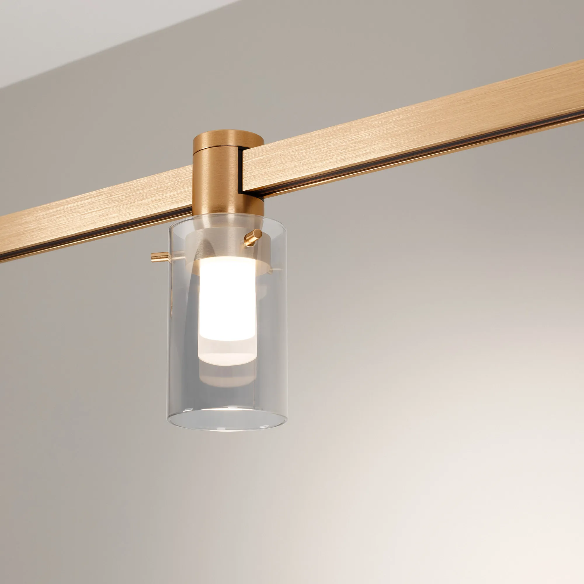 Светильник для треков APRIORI шириной 17 мм. Мощность 5 Вт, св. поток 240 лм, 48 лм/Вт, дневной 4000 K, CRI>90, угол 120°, напряжение питания 48 В. Круглый корпус из алюминия, гальванизированного в цвет светлое золото, экран стекло, степень защиты IP20. Размер: диаметр 60 мм, высота 147 мм. Монтаж на трек APRIORI 17 мм. Пульсация <1%. Возможно диммирование по ШИМ (PWM) или не адресное управление при использовании диммируемого драйвера Dali, 0-10V, TRIAC.