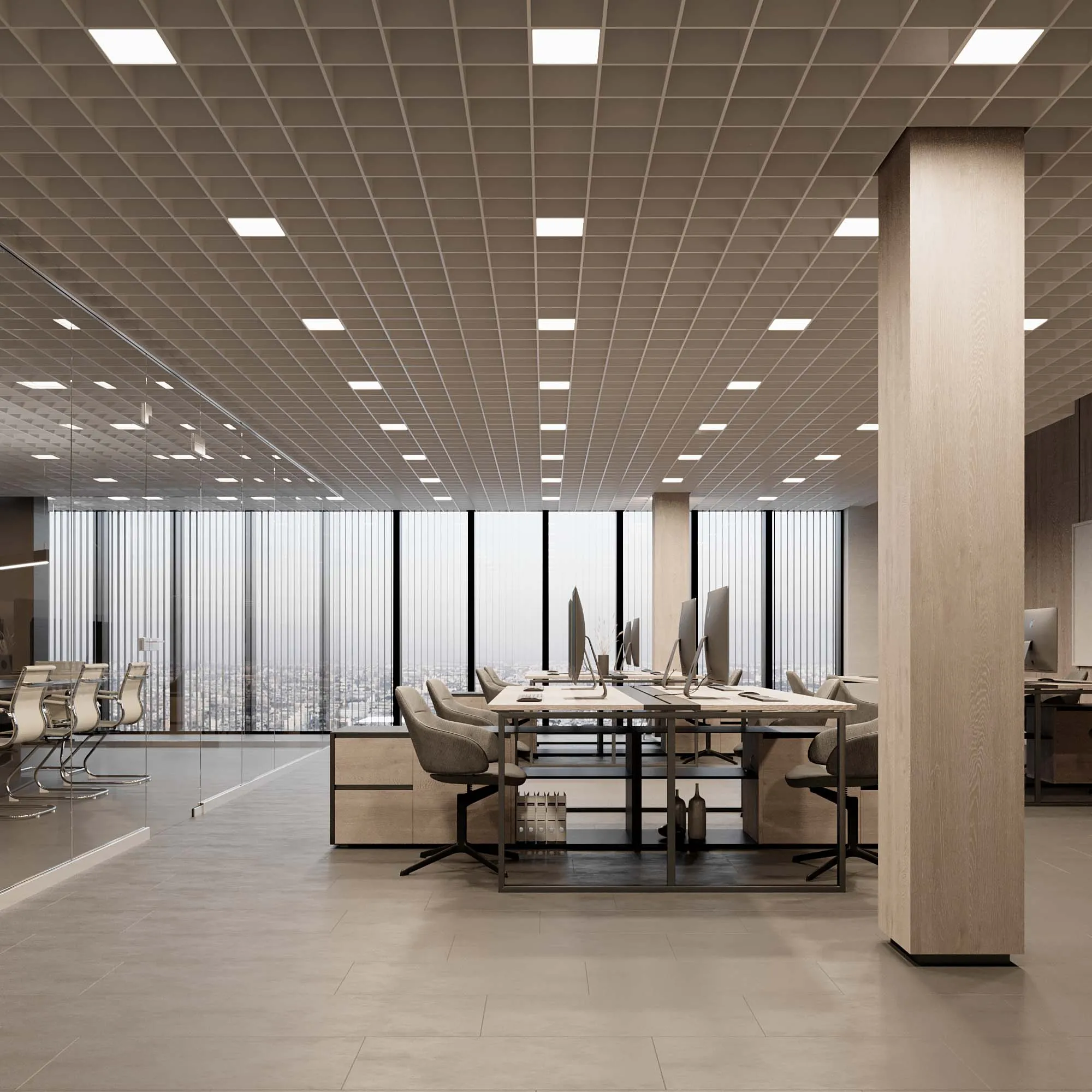 Встраиваемый светильник даунлайт для установки в потолки Грильято с размером ячейки 200х200 мм и высотой направляющих 30, 40 или 50 мм. Мощность 24 Вт, св. поток 2333 лм, 99 лм/Вт, дневной 4000 K, CRI>90, угол 100°, напряжение питания 230 В. Серый квадратный корпус из алюминия (RAL 7045), степень защиты IP40. Размер: длина 190 мм, ширина 190 мм, высота 40 мм. Монтаж встраиваемый, установочное отверстие: длина 190 мм, ширина 190 мм. Драйвер 24-40 В, 600мА, пульсация <1%.