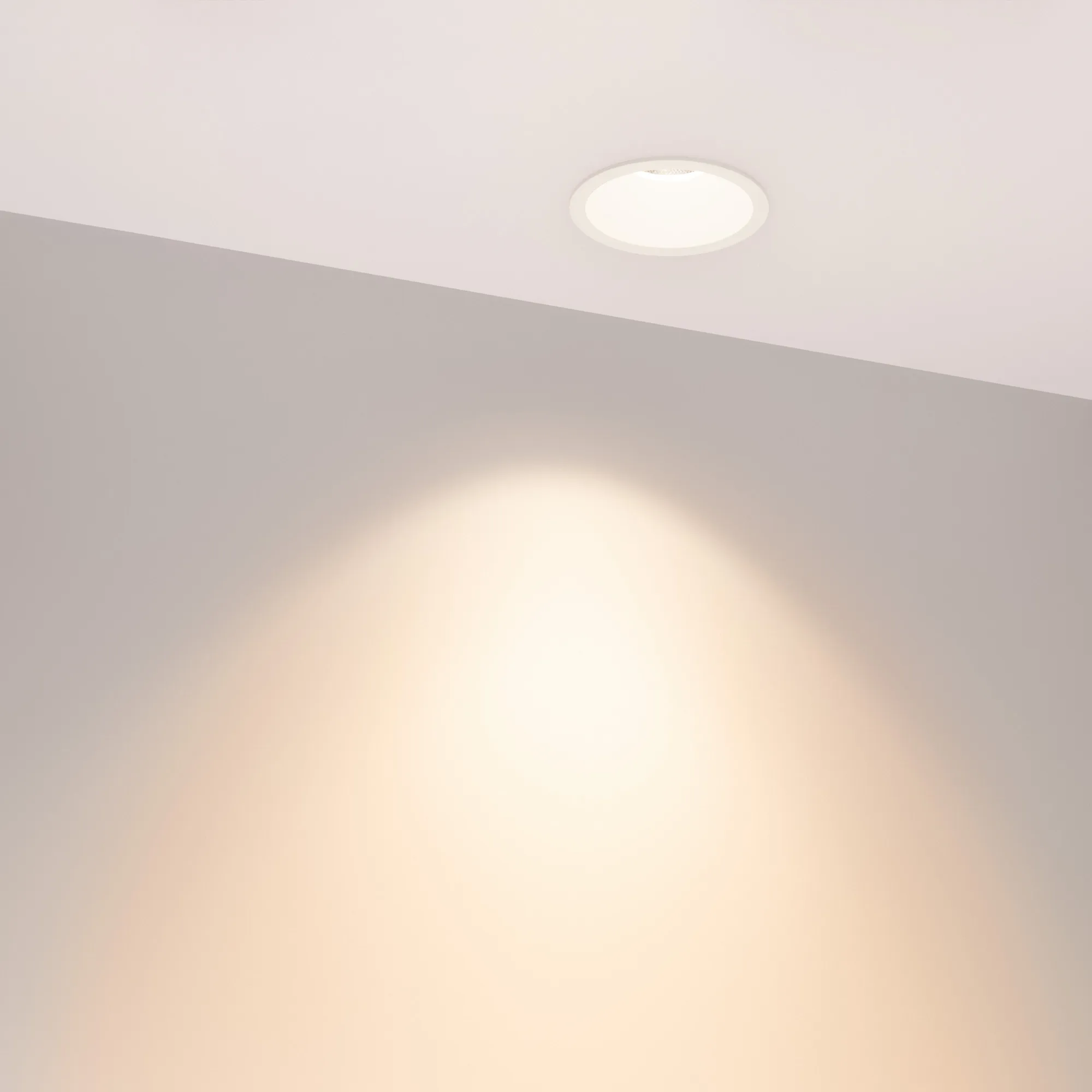 Встраиваемый светильник даунлайт. Мощность 10 Вт, св. поток 980 лм, 98 лм/Вт, тёплый 2700 K, CRI>90, угол 36°, напряжение питания 230 В. Белый круглый корпус из алюминия, степень защиты IP20. Размер: диаметр 82 мм, высота 53 мм. Монтаж встраиваемый, установочное отверстие: диаметр 75 мм. UGR<14. Драйвер 30-42 В, 250 мА, пульсация <2%.