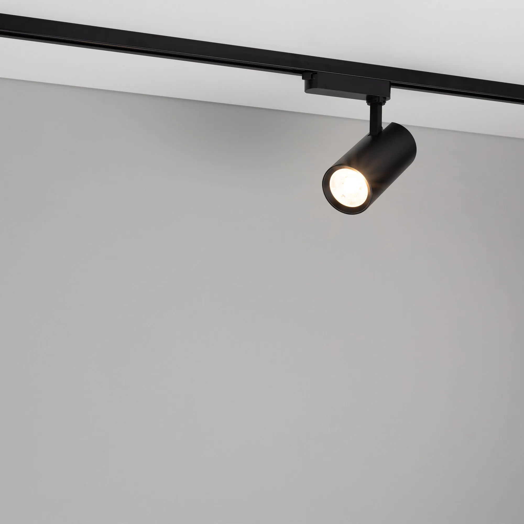 Светильник для треков/шин 2 провода. Мощность 20 Вт, св. поток без решетки honeycomb 2000 лм, 100 лм/Вт, с решеткой honeycomb 1320 лм, 66 лм/Вт, теплый 3000 K, CRI>90, угол 24°, напряжение питания 230 В. Черный круглый корпус из алюминия, материал линзы PMMA, степень защиты IP20. Размер: диаметр 74 мм, длина световой части 154 мм. Монтаж на трек 1-фазный. Драйвер встроенный 500 мА 25-40 В, пульсация <5%.