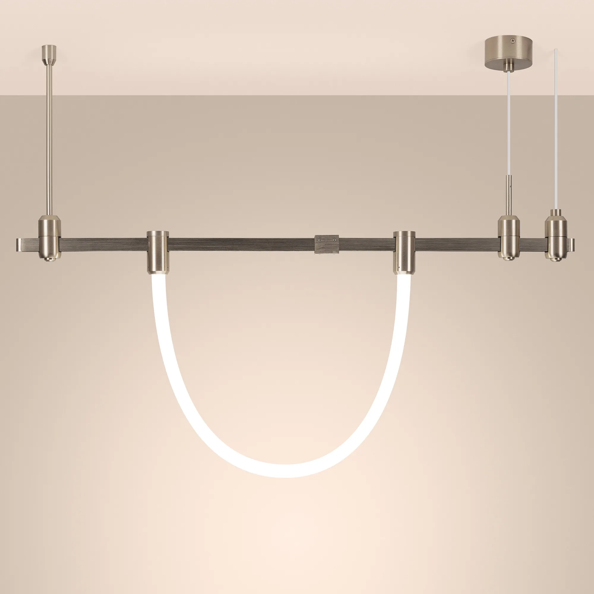 Заказ от 30 шт. Светильник гибкий для треков APRIORI шириной 17 мм. Мощность 17 Вт, св. поток 1030 лм, 60 лм/Вт, теплый 3000 K, CRI>90, угол 360°, напряжение питания 48 В. Матовый белый фигурный корпус из силикона с креплениями, гальванизированными в цвет титан, степень защиты IP20. Размер: длина 2000 мм, диаметр 38 мм. Диаметр крепления 38 мм. Высота крепления 70 мм. Монтаж на трек APRIORI 17 мм. Пульсация <1%. Возможно диммирование по ШИМ (PWM) или не адресное управление при использовании диммируемого драйвера Dali, 0-10V, TRIAC.