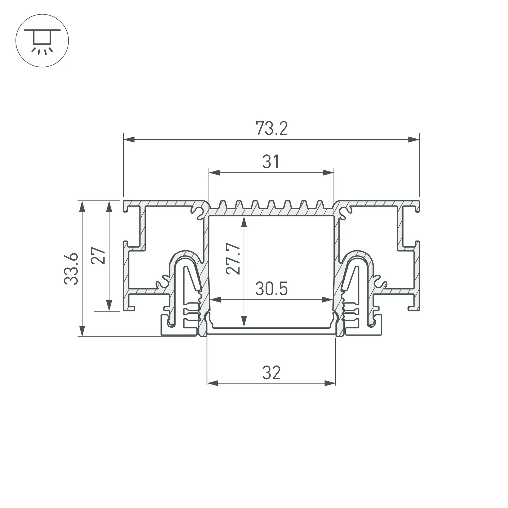 Алюминиевый профиль белого цвета для натяжных потолков (центральная линия). Решение 2-в-1 - каркас для крепления натяжного потолка и профиль для установки светодиодной ленты. Для дизайнерских решений «линии света» в натяжных потолках. Подходит для тканевых и ПВХ потолков. Монтируется к потолку накладным способом. Ширина площадки для ленты 31 мм. Длина 2000 мм. Цена за 1 м.