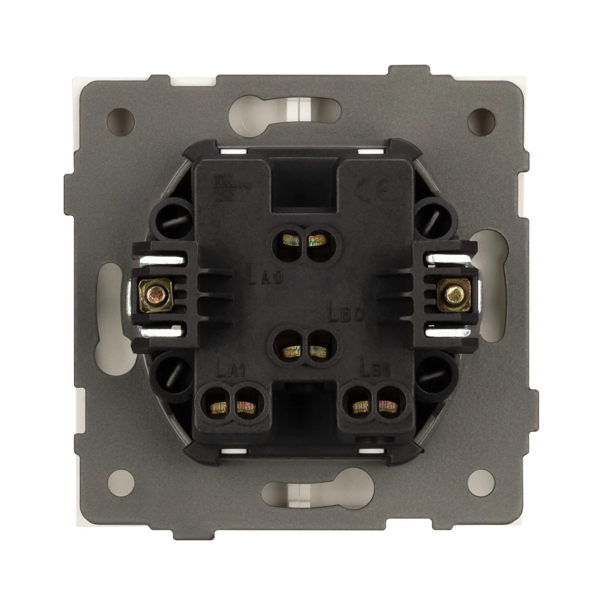 Механизм выключателя света клавишный на 1 пост 2 клавиши (непроходной). Цвет - белый, с Soft-Touch покрытием. Без фронтальной рамки. Уровень пылевлагозащиты IP20. Выключатель устанавливается в стандартный круглый подрозетник круглого сечения диаметром 60мм.